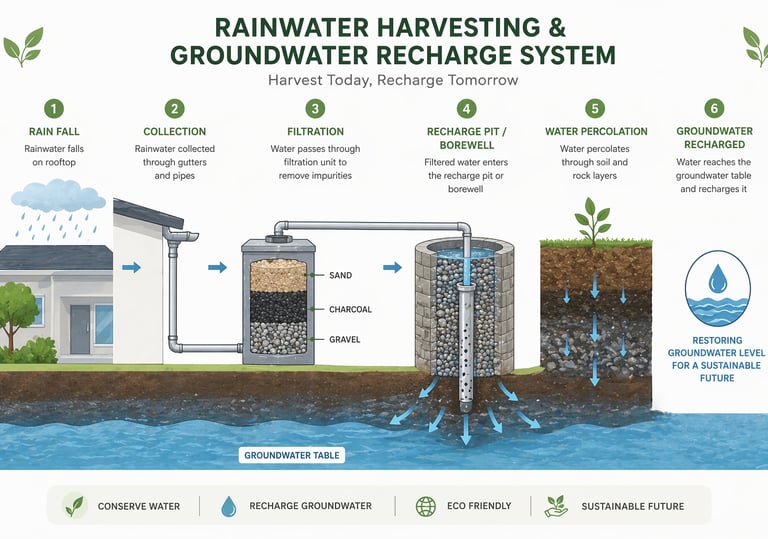 With a strong focus on environmental responsibility, our solutions are engineered to conserve water, improve groundwater levels, and create long-term water security. We combine practical field experience with efficient system design to deliver reliable and impactful results.
